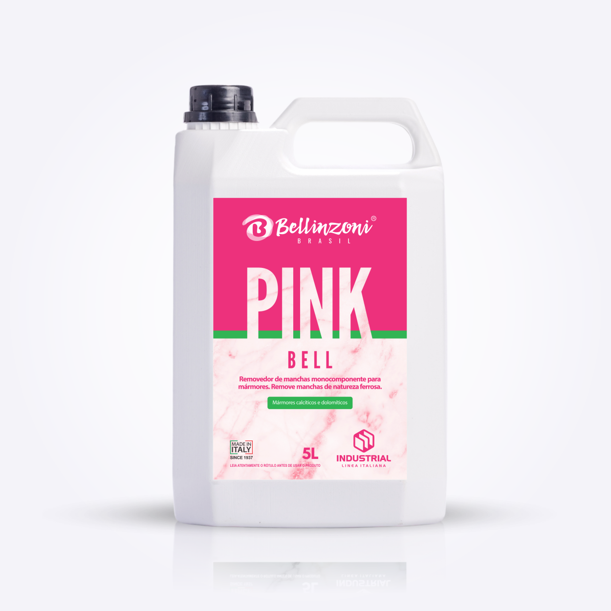 Agente redutor monocomponente, promove uma reação de redução alterando o nox de alguns metais dissolvendo ligações de sulfetos, tal reação desloca o equilíbrio iônico de alguns metais de transição presentes no interior dos minerais removendo oxidações e impurezas. Sua ação não gera a formação de um quelato ferroso roxo de PINK REDOX com o ferro, tornando uma aplicação direta sem a necessidade da neutralização com (PINK REMOVER B). PINK BELL tem um pH levemente ácido, no entanto não causa corrosão em superfícies de mármores como Matarazzo e Branco Paraná. PINK BELL é aplicado diretamente sobre o matiz rosado predominante na massa do mármore; PINK REDOX elimina manchas rosadas características em mármores calcíticos e dolomíticos.
